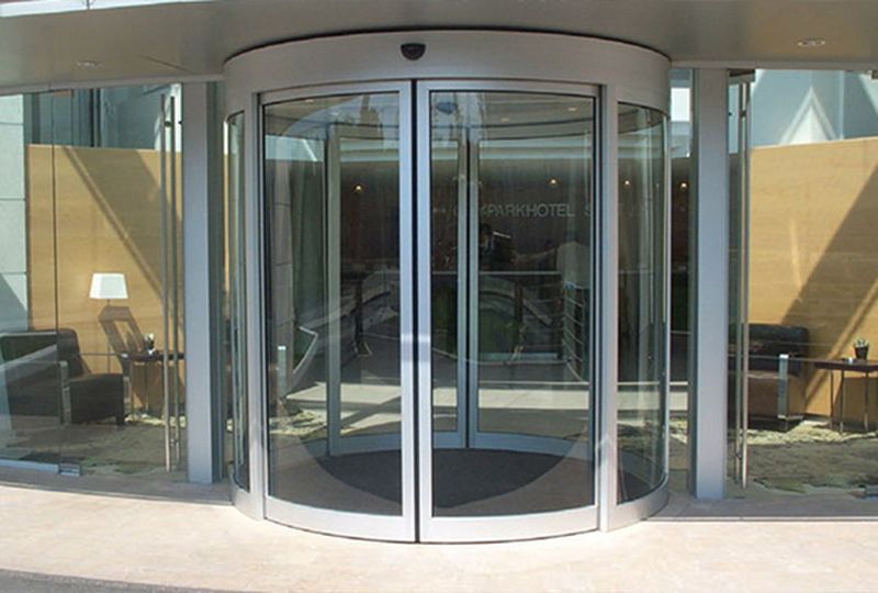 Автоматические револьверные (вращающиеся) двери в разы лучше защищают помещение от неблагоприятных внешних воздействий, погодных условий, задерживают ветер, исключают сквозняки, пропускают в помещение только то количество воздуха, которое находится между лопастями, сохраняя таким образом тепло.