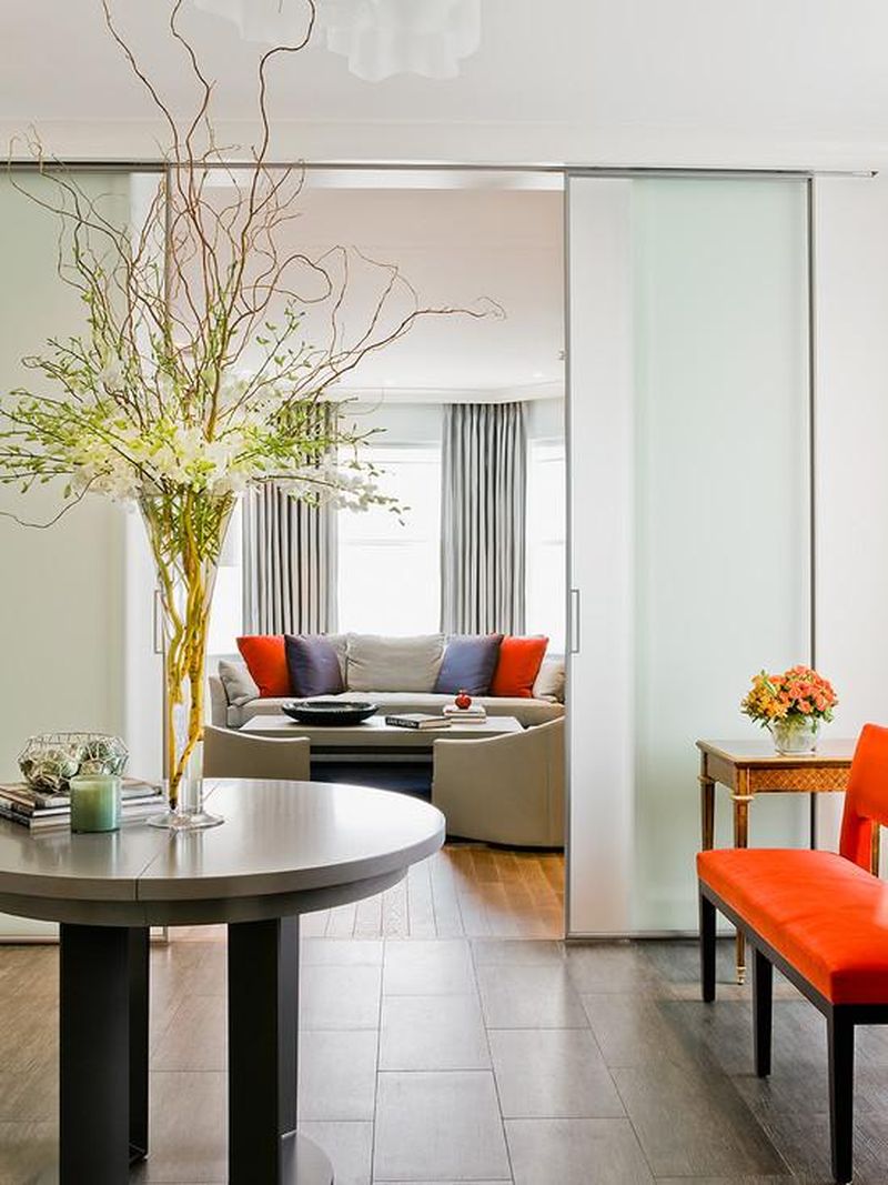 Стеклянные раздвижные перегородки представляют собой ограждения, которые позволяют организовать пространство квартиры или загородного дома, поделить его на зоны или разделить на комнаты. Секции такой перегородки сдвигаются вбок друг за друга, вплоть до самой последней. Современные технологии крепления позволяют установить конструкцию без нижнего рельса, что еще больше облегчает внешний вид перегородки и улучшит их эстетическую составляющую.