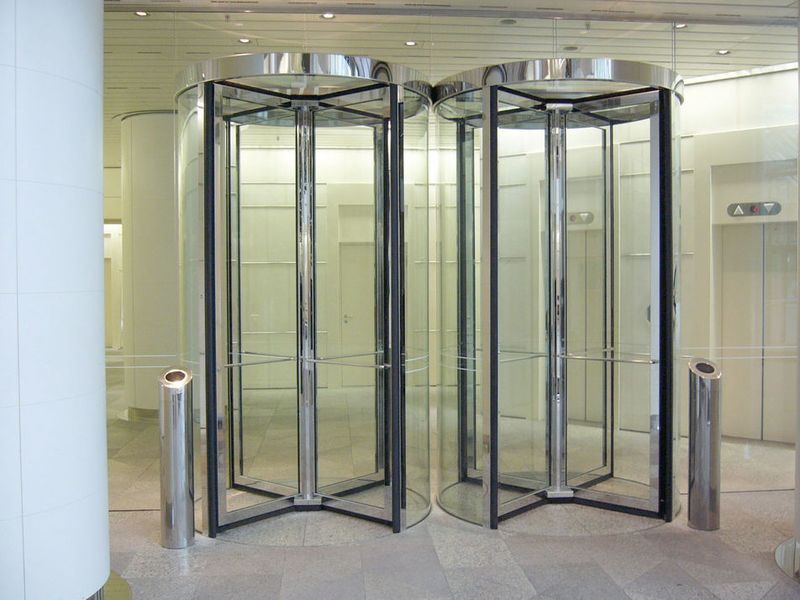 Вход является визитной карточкой здания, поэтому почти каждый крупный уважающий себя торговый центр выбирает именно автоматические револьверные двери, цена на которые, заметим, весьма приемлема. Это самое оптимальное решение, улучшающее внешний вид фасада и обеспечивающее быстроту, комфорт и безопасность интенсивного потока посетителей. Да и наличие таких дверей придает помещению особую элегантность.